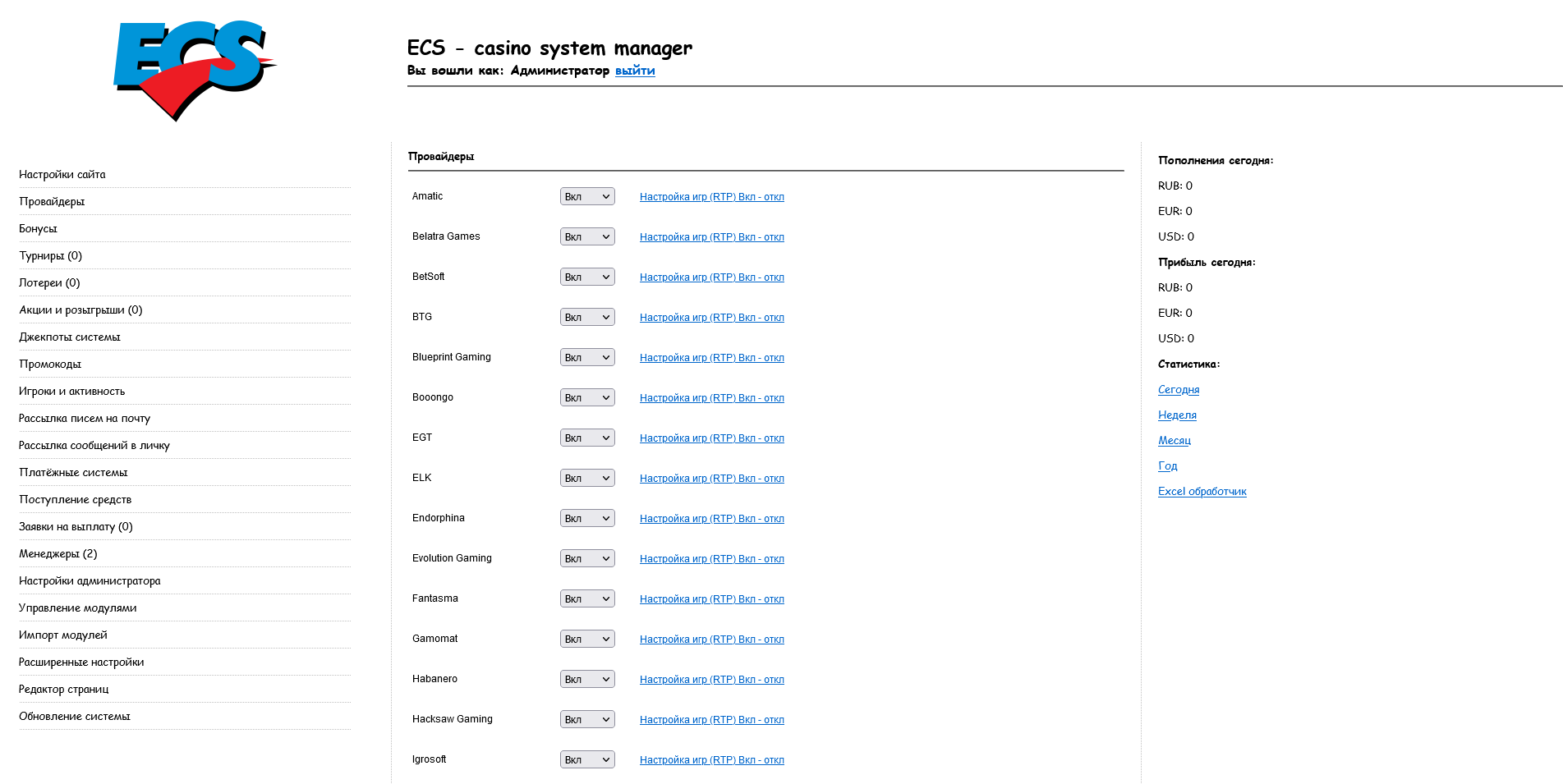 Скрипт казино работает на движке ECS